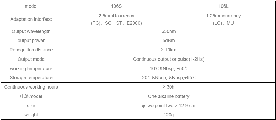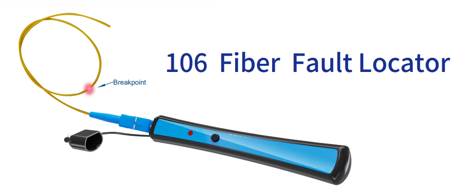 106 Fiber Fault Locator – The 106 series fiber optic fault locator uses visible light to detect fiber optic fault points. By generating strong red light, it easily penetrates the fiber optic and makes the position of the fiber optic fault point clear and visible. It has the advantages of small size, light weight, high output power, and simple operation, making it an ideal tool for detecting fiber optic fault points in fiber optic network engineering sites.