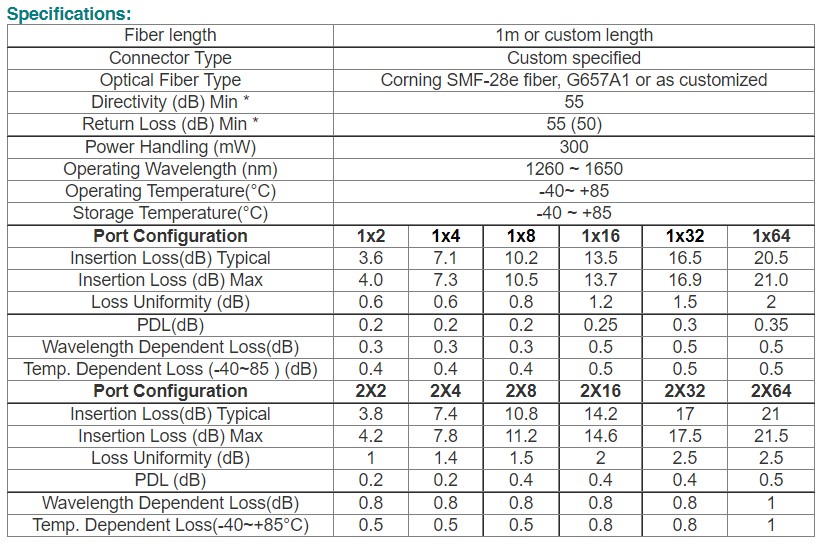 - Wide Operating Wavelength: from 1260nm to 1650nm