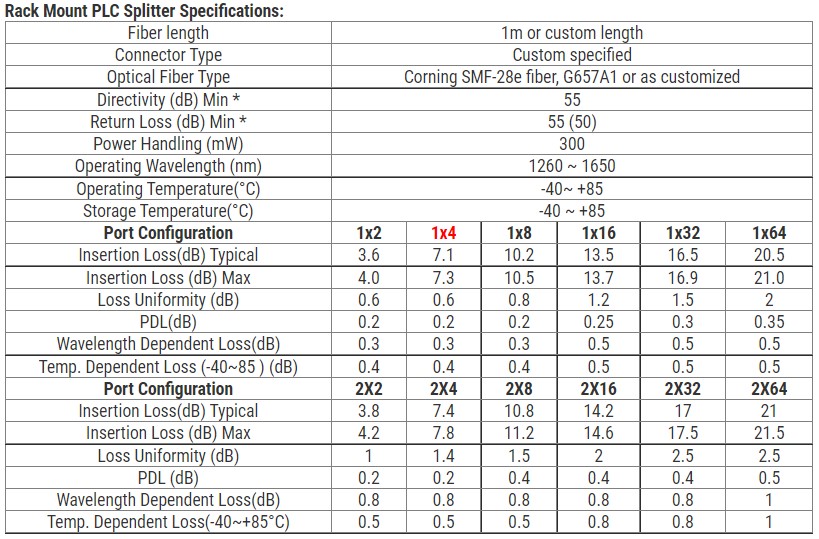 Splitter Type : 1×6 With Connector Or 1*6 Without Connector
