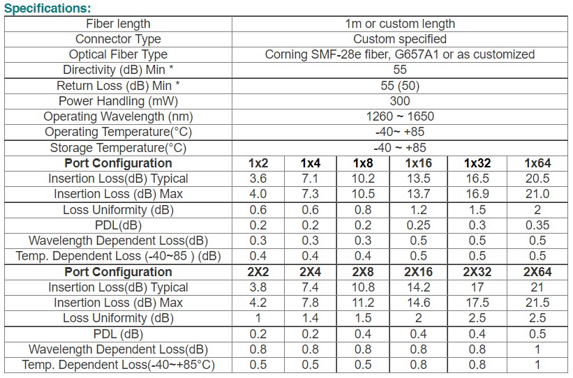Small Size 1×4 Fiber Optical Splitter Modular SC APC Connector 2.0mm High Reliability