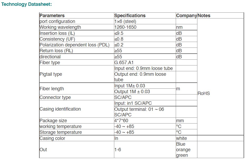 Splitter Type : 1×6 With Connector Or 1*6 Without Connector
