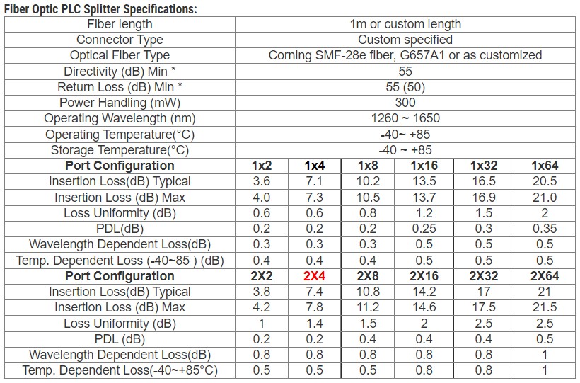 - Low Polarization Dependent Loss.