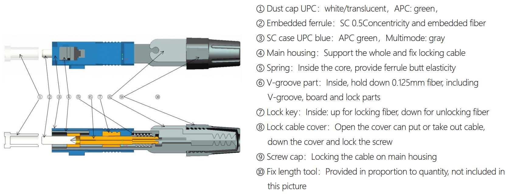 FASTCONN Fast Connector – Dimension Technology FASTCONN fiber optical quick connector, using a precision V-groove design, is a reusable passive device used to connect two fibers or optical cables to form a continuous optical path with simple and fast operation, saving time