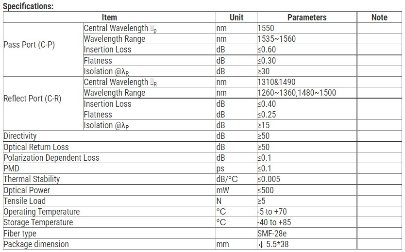 Filter Wavelength Division Multiplexer FTTH/FTTx 1310/1550/1490nm EPON FWDM Filter WDM