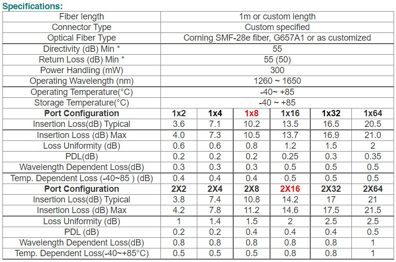 - Low Polarization Dependent Loss.