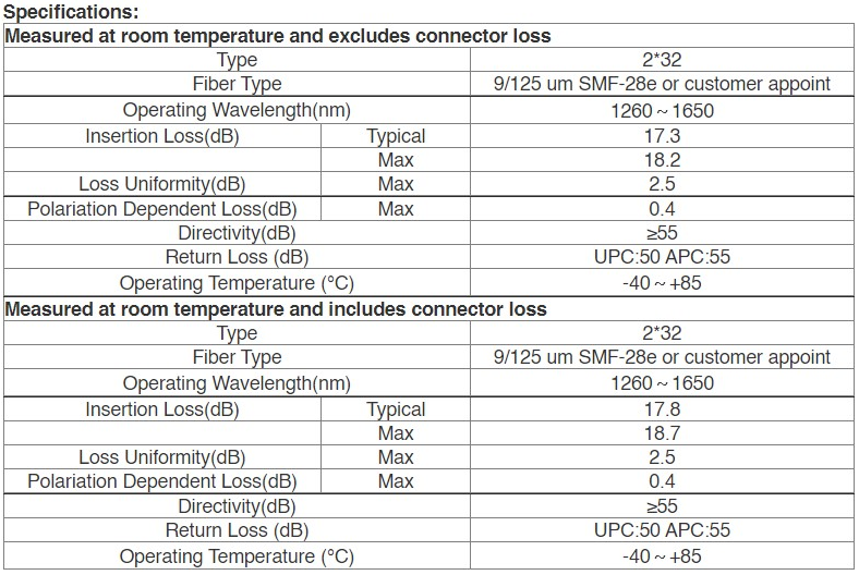 - Low Polarization Dependent Loss.