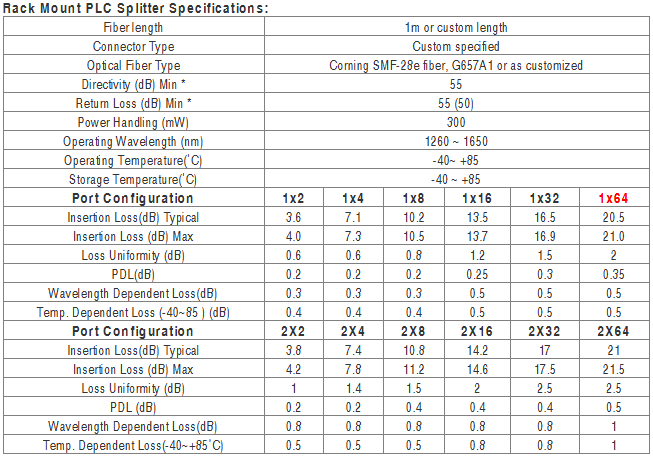 - Configuration Type: 1×64, SC/UPC connector or customized