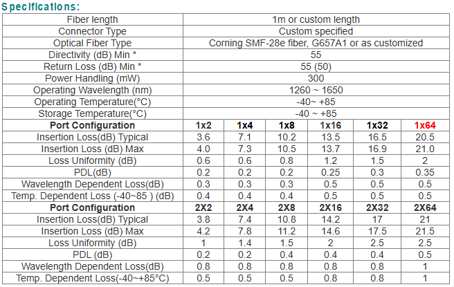 - Low Polarization Dependent Loss.