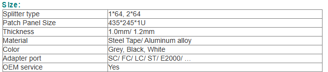 SC/APC Fiber Optic Splitter Rack Mount Patch Panel 1U Aluminium Alloy 1×64