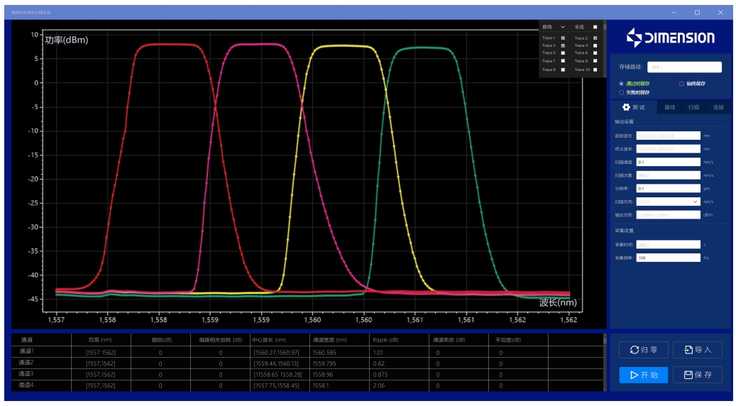 The wavelength scanning system independently developed by Dimension Technology is equipped with TopLight tunable light source and high speed power meter, with a wavelength accuracy of ± 5pm and a fast scanning speed of 100nm/s, providing a solution for wavelength related devices