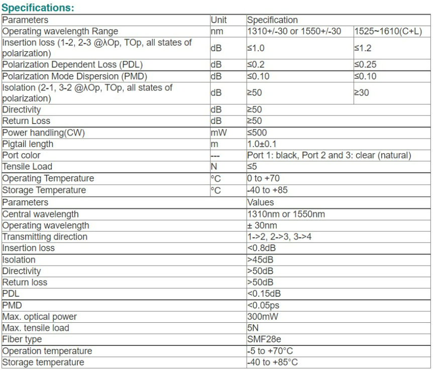 Single Mode 4 Four Port Fiber Optic Cable Splitter Laser Circulator High Power