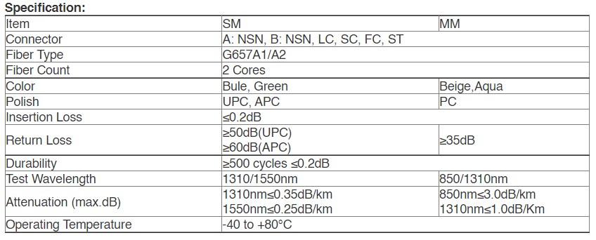- The connector of side A is DLC, and side-B can be LC, FC, SC